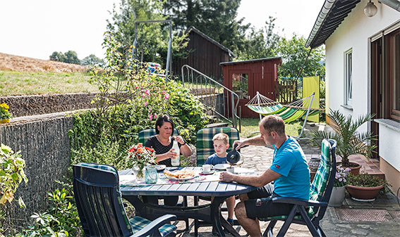 Auf der Terrasse können Sie in Ruhe die Natur und die Nähe zum Wald genießen, einfach mal die Seele und sich selbst in der Hängematte baumeln lassen.