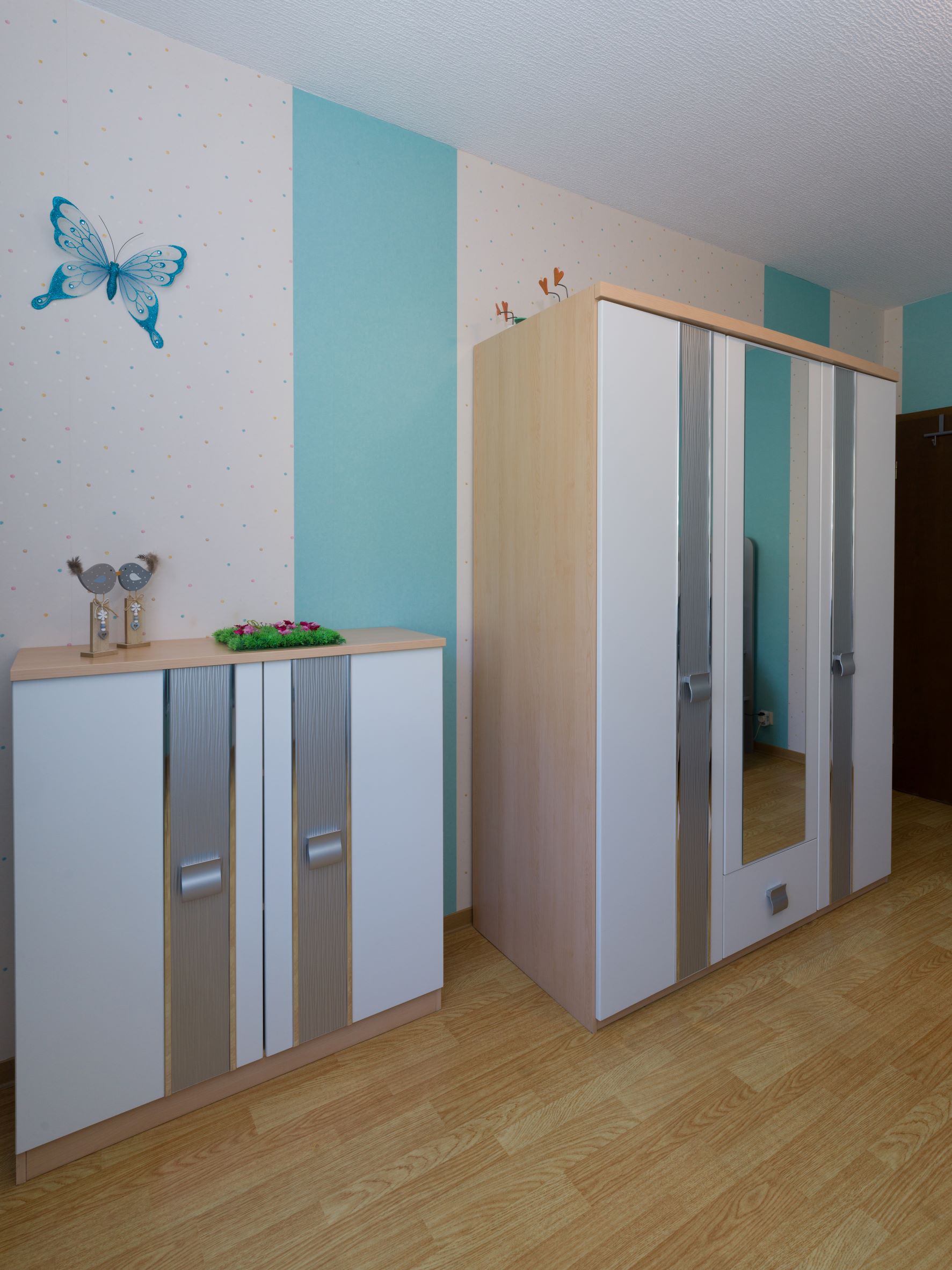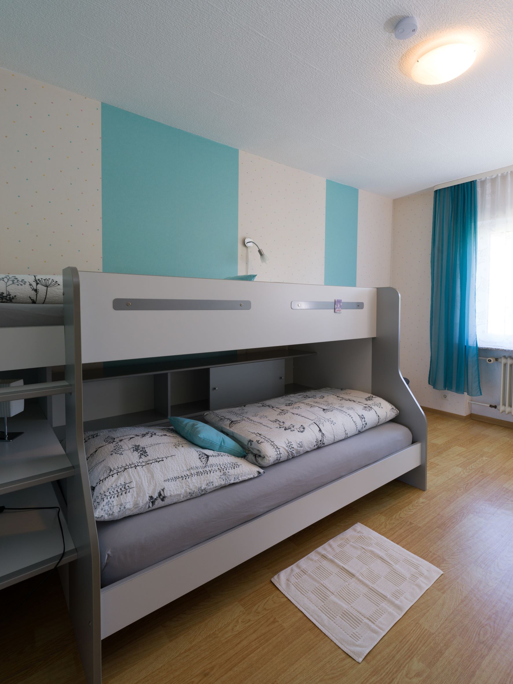 Schlafzimmer Etagenbetten, Liegefläche 90x200cm je Etage, Bettwäsche ist vorhanden, Betten sind bezogen.